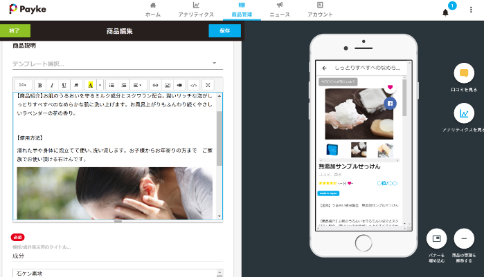 ①メーカー様側で、商品情報のcsv形式やエクセルデータを頂ければ、Payke側でインポートを行います。
